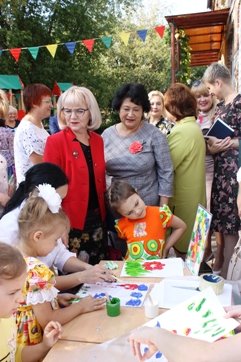Для гостей учреждения сотрудники и дети продемонстрировали мастер - классы: рисование абстрактных картин цветными мыльными пузырями и рисование под пленкой. Музыкальным подарком стало выступление учащихся отделения эстрадно-джазового искусства детской школы искусств №2 им. С.С. Прокофьева Борисова Артура и Киры Гоголадзе, неоднократных победителей Российских и международных конкурсов и фестивалей вокального мастерства.